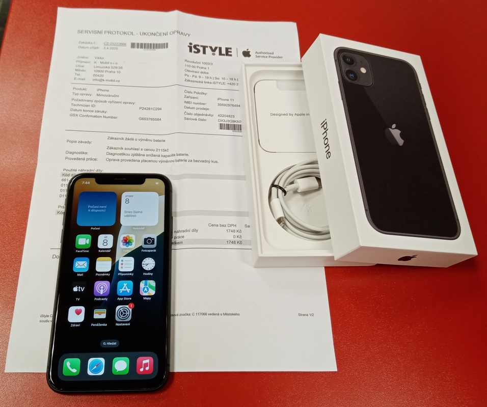 Apple iphone 11 128GB použitý - dat. kabel, krabička. Pěkný stav pouze jedna oděrka na obvodu viz foto. Kondice baterie 100% - vyměněna v autorizovaném servisu iStyle.