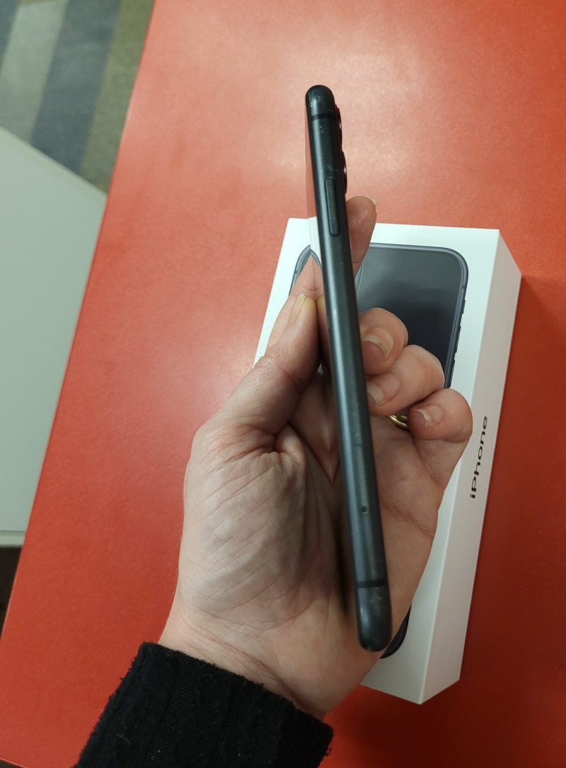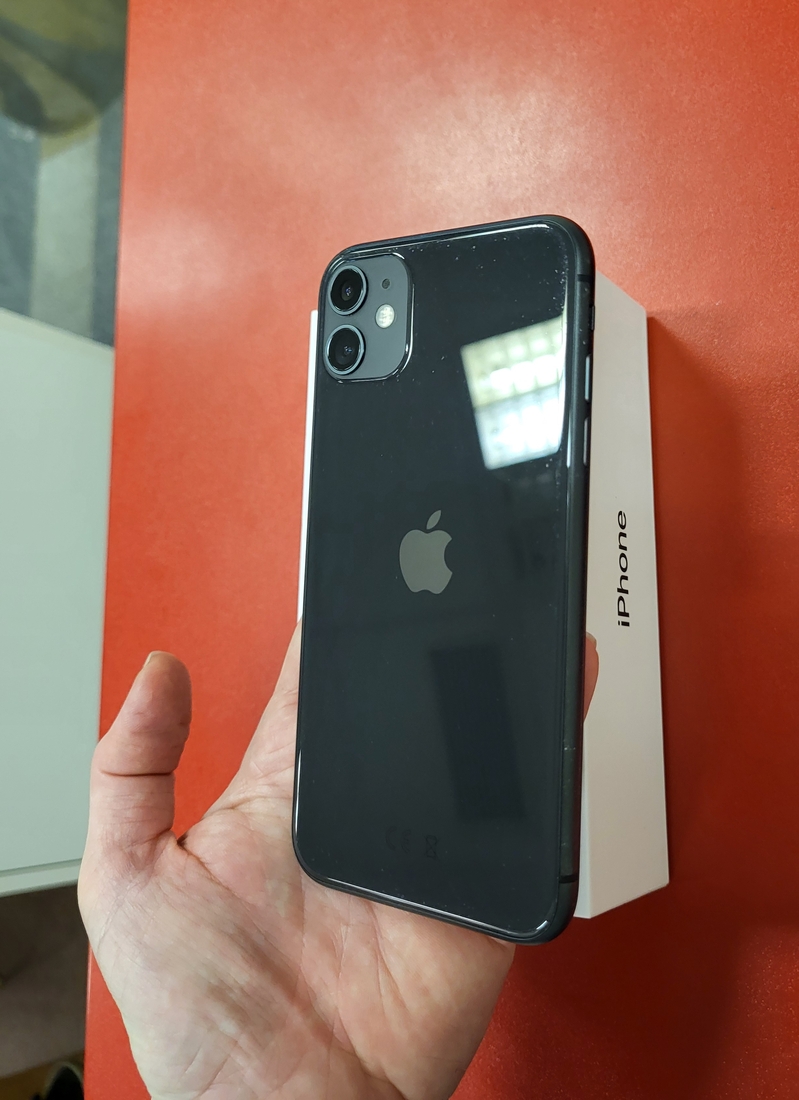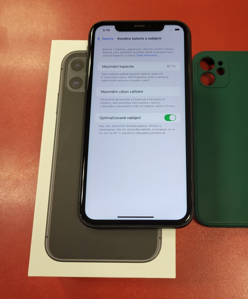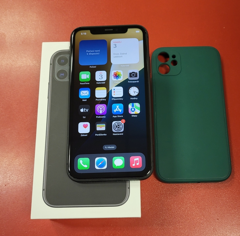 Apple iphone 11 64GB použitý - bez nabíječky, krabička, pouzdro. Oděrky na obvodu,vlásečnice na LCD. Kondice baterie 87%.
