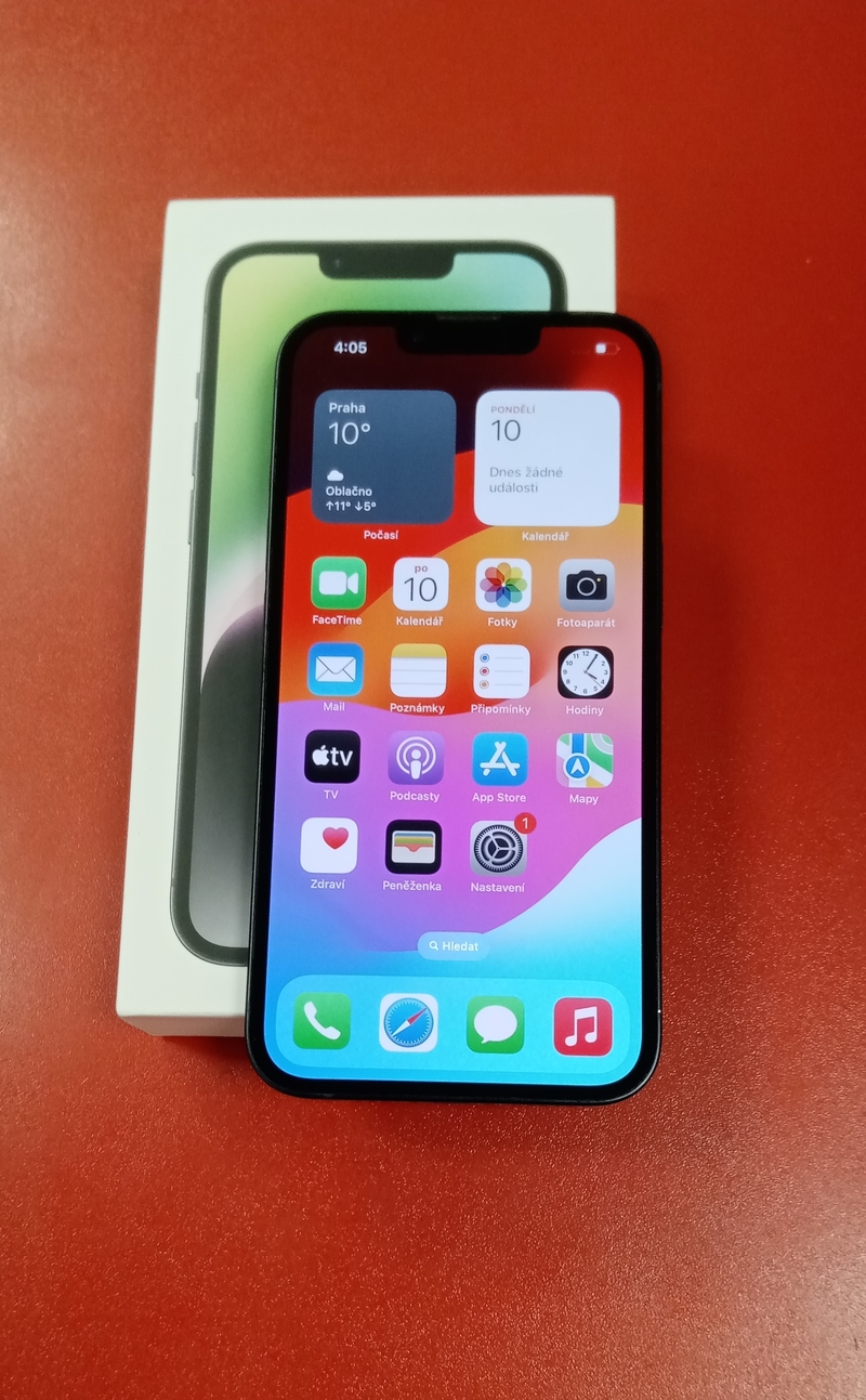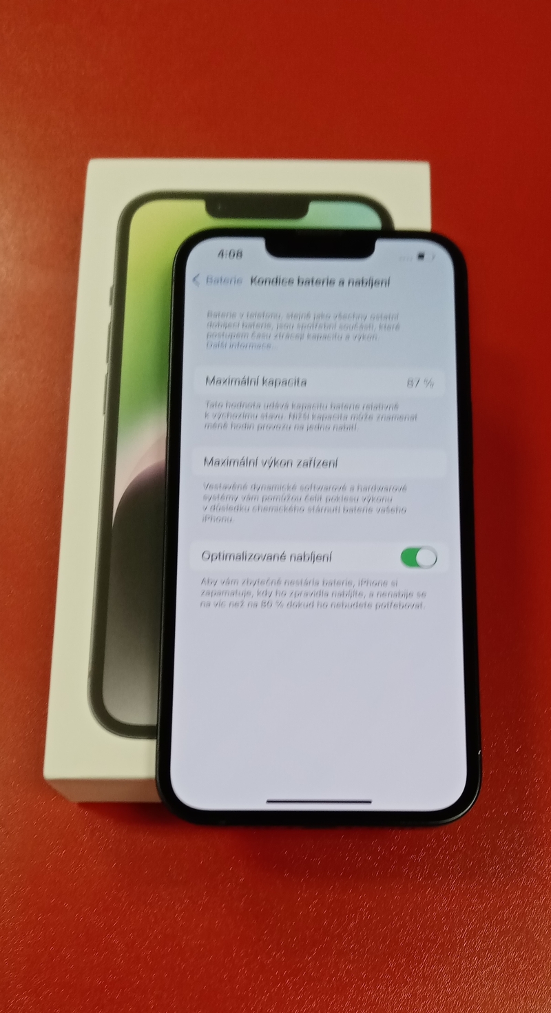Apple iPhone 14 128GB použitý - Krabice, bez kabelu. Pěkný stav zepředu, drobné oděrky zezadu. Kondice baterie 87%.