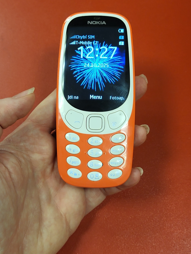 Nokia 3310 použitý - bez nabíječky. Drobné oděrky.