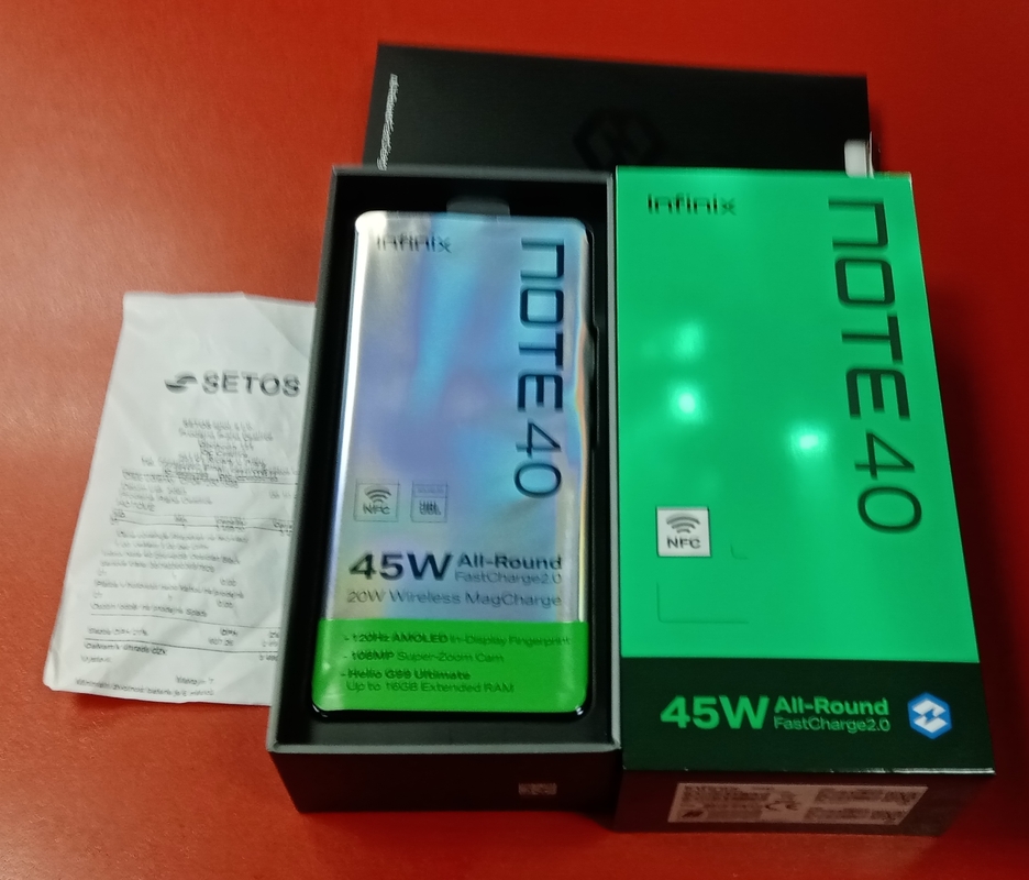Infinix Note 40 8GB/256GB rozbalený - záruka do 6.10.2027 Setos. Krabice, nabíječka 45W, kabel, pouzdro, sluchátka, ochranné sklo. 100% stav.