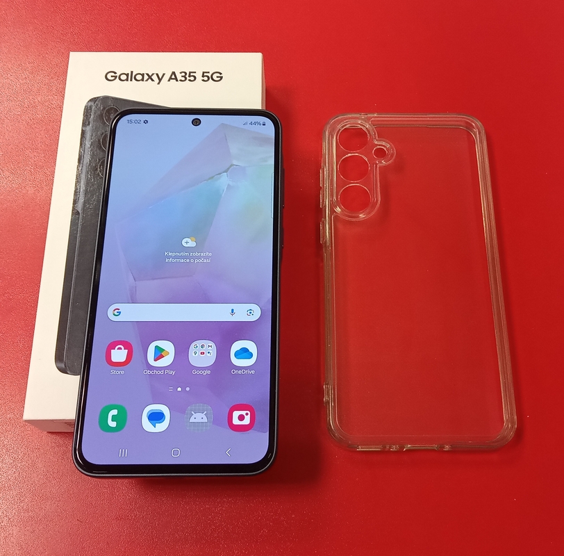 Samsung Galaxy A35 5G 6GB/128GB použitý - Krabice, kabel, sponka sim, pouzdro. Super stav jako nový. Ochranné sklo na LCD.