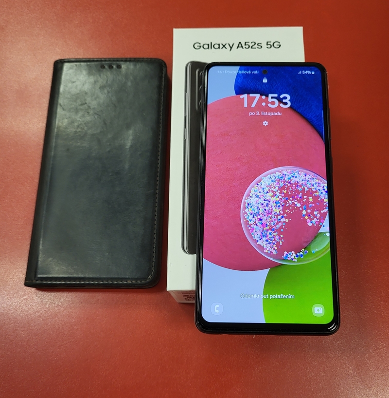 Samsung Galaxy A52s 5G A528B 6GB/128GB použitý s krabicí, pouzdro. Bez nabíječky. Pěkný stav, původní folie ještě po obvodu. Ochranné sklo na LCD.